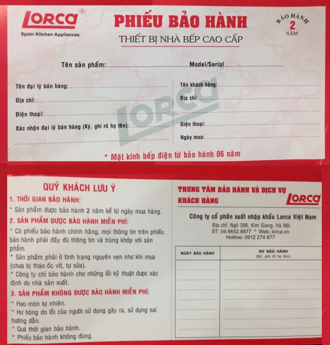 Các sản phẩm máy hút mùi Lorca được bảo hành chính hãng 36 tháng.